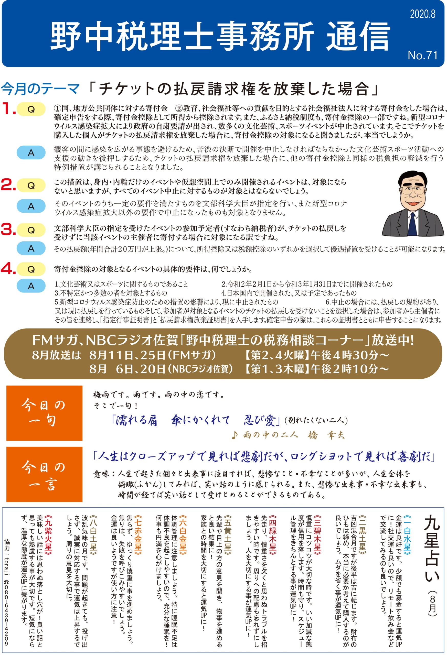 今月のテーマ「チケットの払戻請求権を放棄した場合」 PDFからご覧いただけます 野中税理士事務所通信 野中税理士事務所通信 No.70 野中税理士事務所通信 No.72 関連記事 野中税理士事務所通信 No.135 2026年2月3日 野中税理士事務所通信 No.134 2025年12月26日 野中税理士事務所通信 No.133 2025年11月28日 野中税理士事務所通信 No.132 2025年11月6日 野中税理士事務所通信 No.131 2025年10月3日 野中税理士事務所通信 No.130 2025年8月30日 野中税理士事務所通信 No.129 2025年8月8日 野中税理士事務所通信 No.128 2025年7月7日