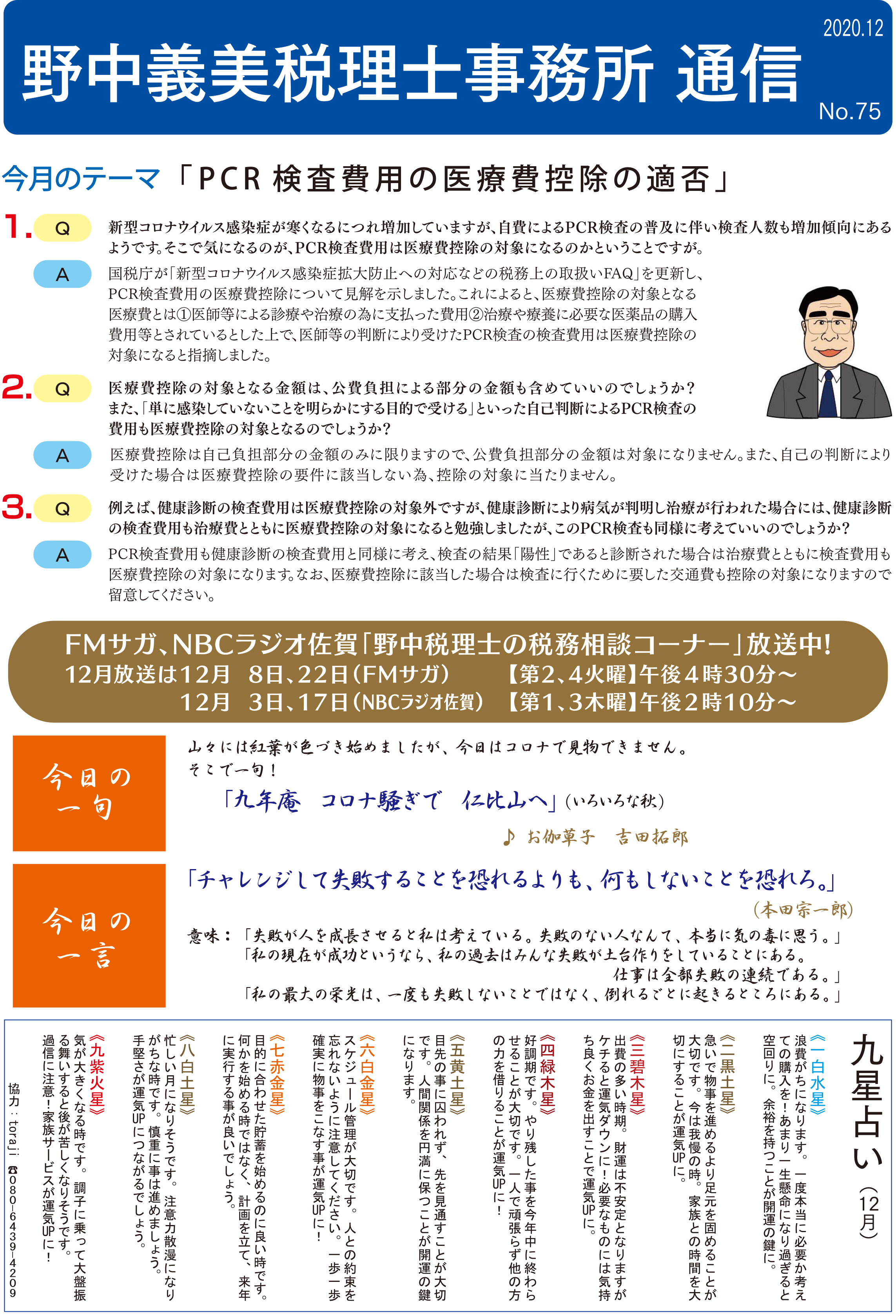 今月のテーマ「PCR検査費用の医療費控除の適否」